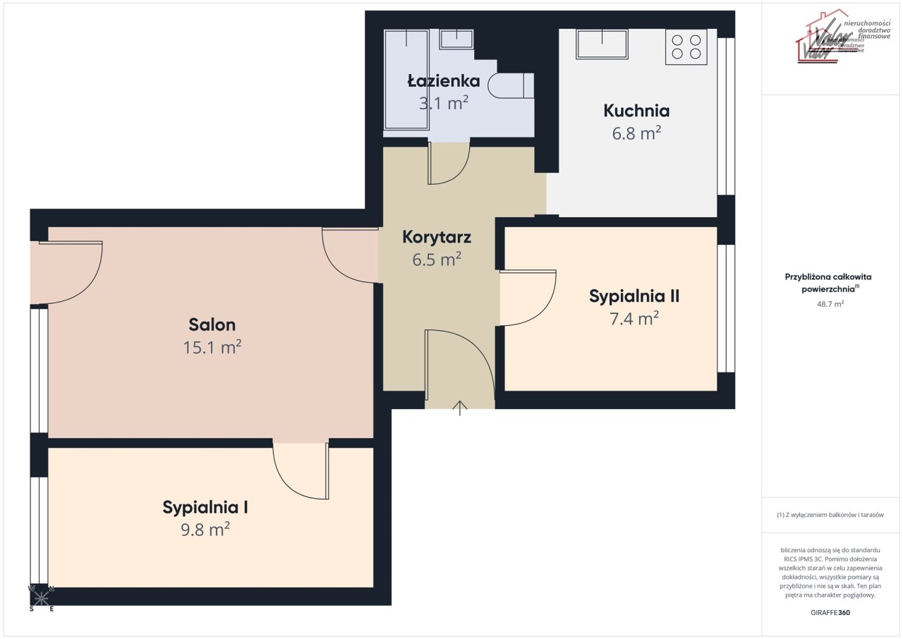 Mieszkanie o powierzchni 48,15 m² składa się z: