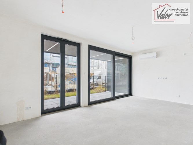 • Salon z aneksem kuchennym o pow. użytkowej 28,00 m2 z wyjściem na taras o pow. użytkowej około 8 m2,