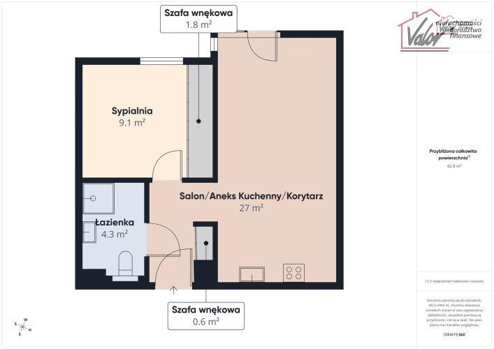 -Korytarz z pojemną szafą w zabudowie o powierzchni 6,00 m²,